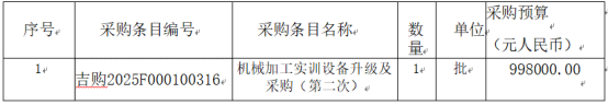 项目名称:机械加工实训设备升级及采购(第二次)