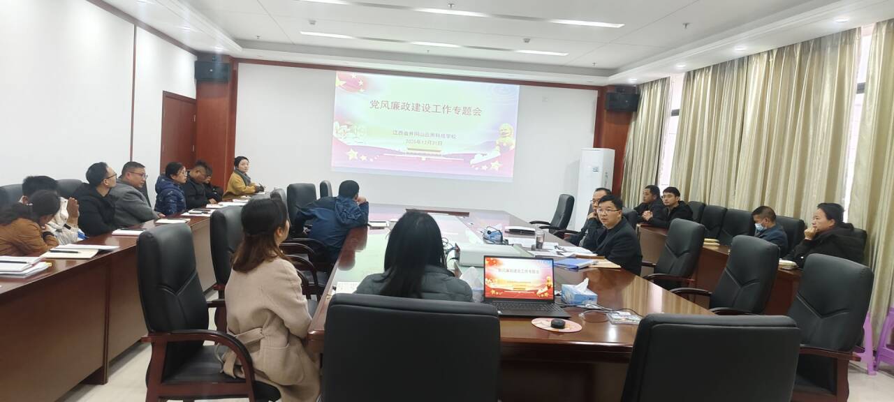 12月31日下午,我校召开党风廉政建设工作专题会议。会议由党委书记谢志辉主持,他同时作了2025年度落实党风廉政建设工作总结。校长韩海强就学校党风廉政建设监督工作作了专题报告。全体党委班子成员、各科室负责人及纪委委员共20余人参加了会议。