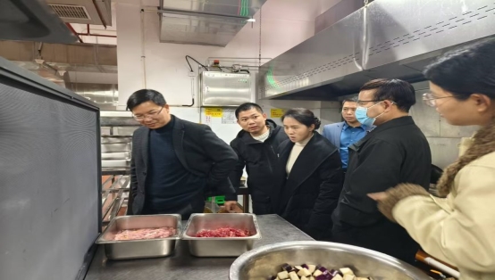 在食堂,校领导一行实地查看了后厨操作间、餐具洗消区、食品原料仓库等重点功能区,着重强调学校开餐前卫生工作、消杀工作要走在前面,确保食品安全无小事,责任机制大如天,切实把广大师生“舌尖上的安全”放在首要位置。