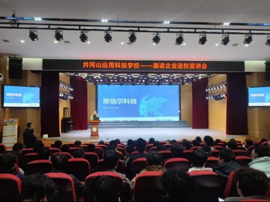 2025 年 11 月 4 日下午两点,我校报告厅内一场主题鲜明的企业专场宣讲会成功举办。学校特邀吉安兆杭科技有限公司、江西思佰尔科技有限公司、吉安申通快递、吉安市云禾数字传媒有限公司、吉安市木林森实业有限公司五家本土优质企业入校,为2026届联培班大专毕业生搭建实习就业对接平台。