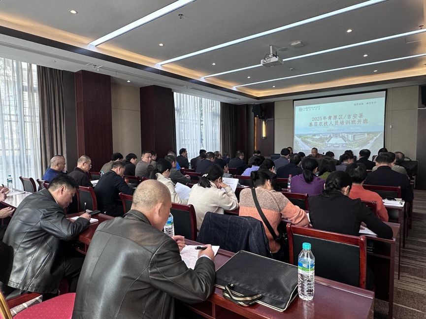为进一步提高基层农技人员的技术水平和综合素质,提升服务能力,推进乡村全面振兴、实现农业农村现代化提供有力人才支撑。11月17日,江西省井冈山应用科技学校启动2025年青原区/吉安县基层农技人员培训,开班仪式在吉安市乡村振兴学院培训基地举行。仪式由成教科负责人胡文刚主持。
