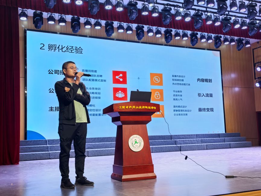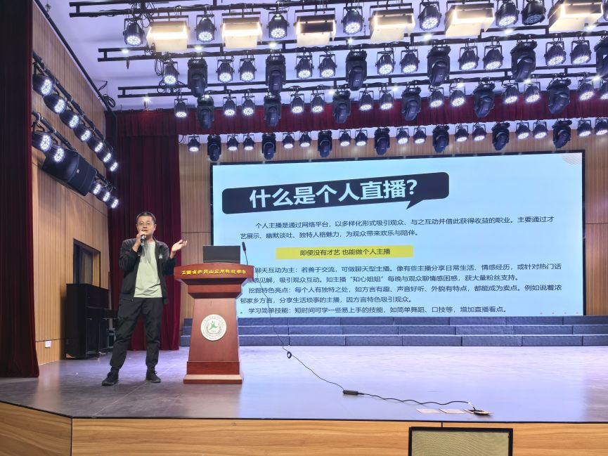 为帮助电商专业学子精准把握行业趋势、明晰职业方向,10月21日,井冈山应用科技学校艺商部邀请江西可颜文化传媒有限公司运营总监郭强担任主讲嘉宾,在报告厅举办“直播电商宣讲会”。23至25级电商专业师生共同参与。