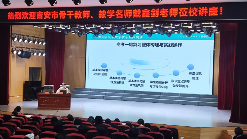 随着职业教育改革的深入推进,职教高考制度不断完善,对教学工作与备考能力提出了新的挑战与要求。为帮助我校教师进一步提升教学与备考能力,深化对教考衔接理念的理解与实践,提升我校教学质量与备考实效,2025年12月9日下午,我校特邀吉安县数学学科带头人、吉安市骨干教师、教育部“双名计划”刘志乐名师工作室核心成员戴鑫剑老师莅临我校举办专题讲座。讲座由教务科副科长邹盼主持,我校高考部全体教师及部分班级学生代表共同参加了本次重要讲座。